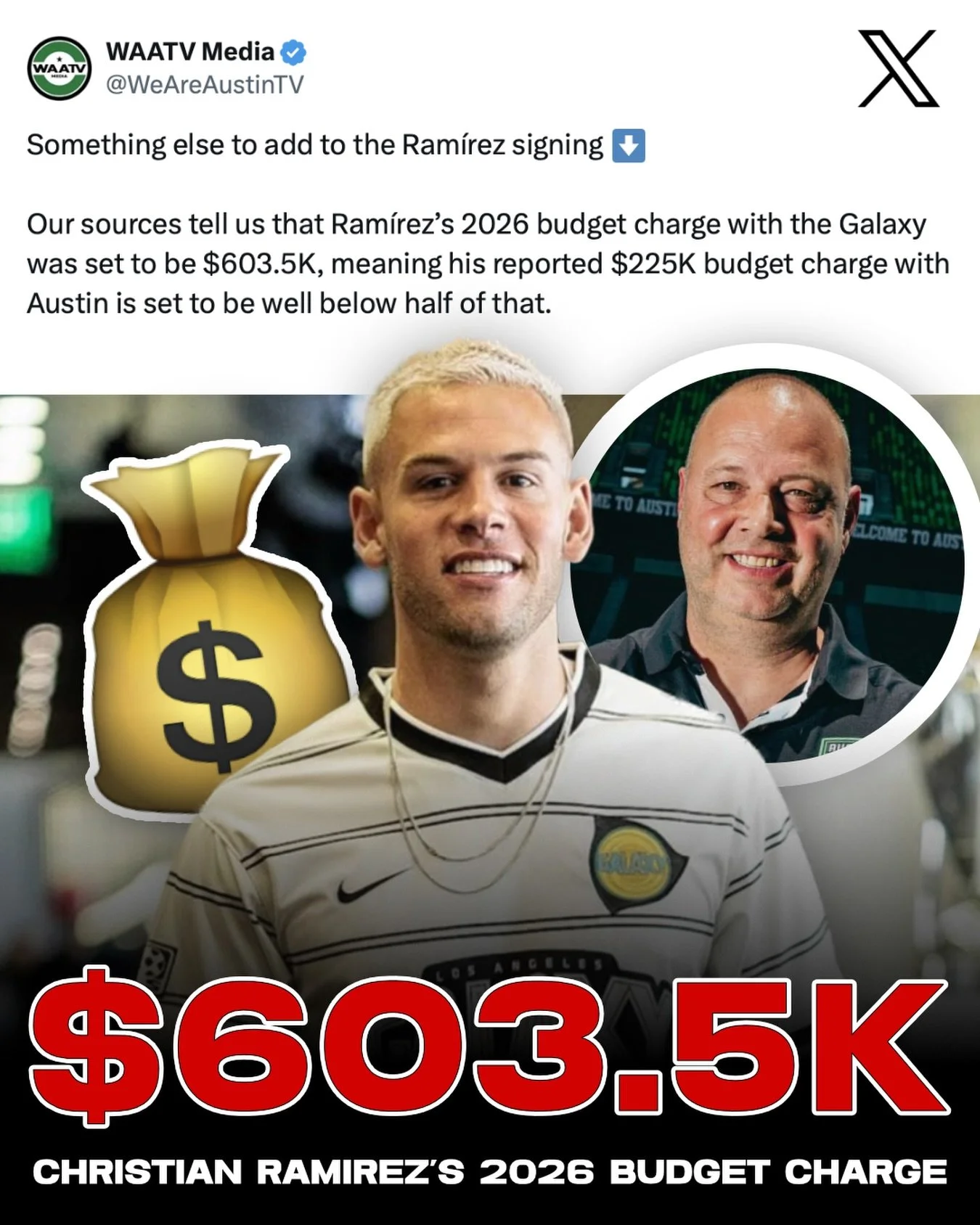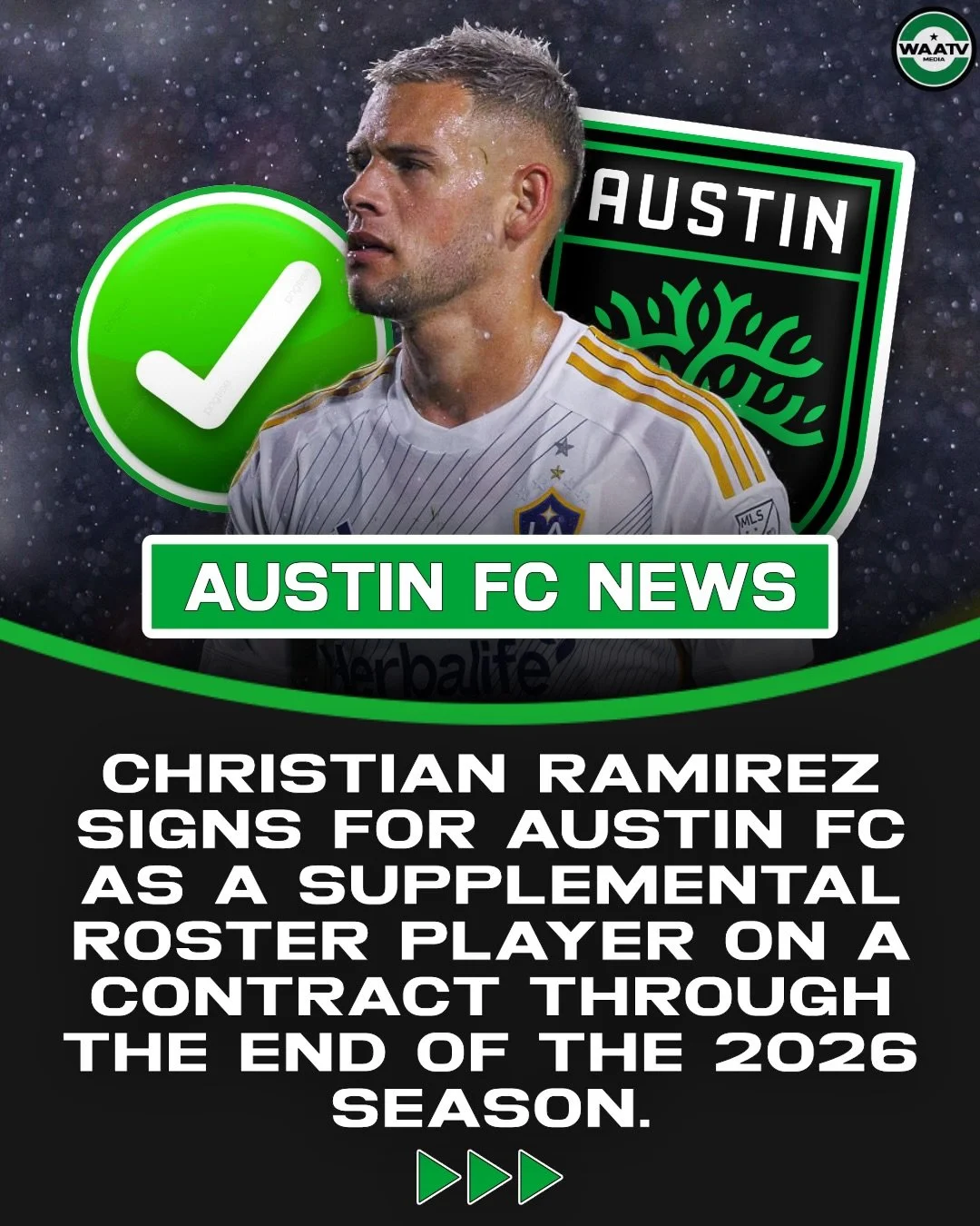 AUSTIN FC SIGNS CHRISTIAN RAMIREZ AFTER THE LA GALAXY PLACED HIM ON WAIVERS TO BE ROSTER COMLIANT