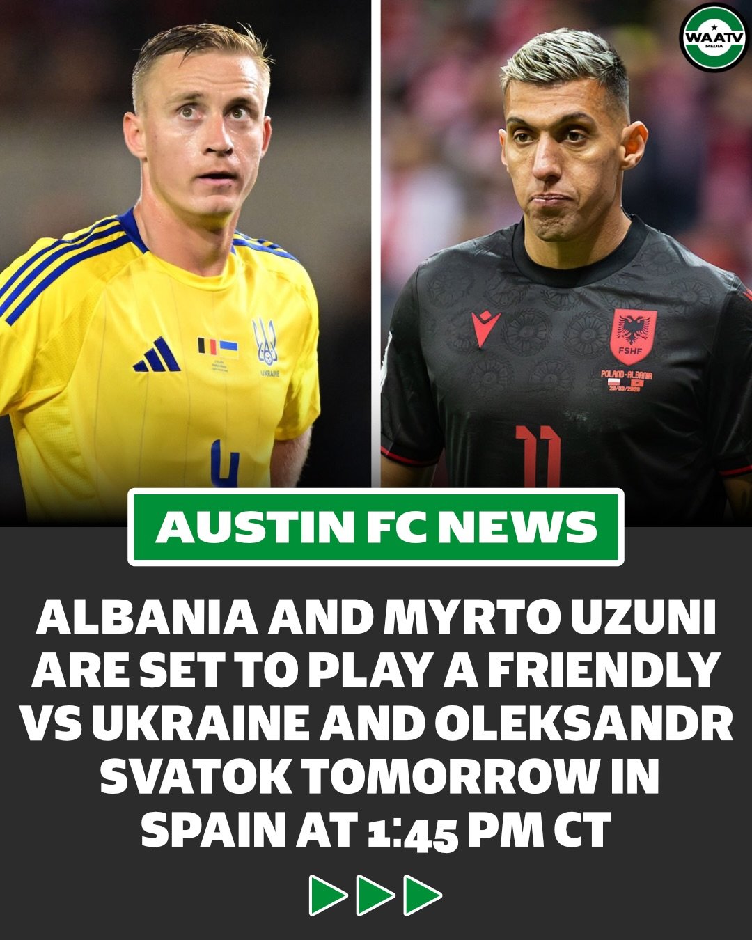 AUSTIN FC SET TO FACE INTER MIAMI AWAY FROM HOME JOSEPH ROSALES HAS BEEN CALLED UP THE HONDURAN NATIONAL TEAM FOR THEIR FRIENDLY AGAINST PERU OLEKSANDR SVATOK HAS BEEN CALLED UP TO THE UKRAINE NATIONAL TEAM FOR THEIR WORLD CUP QUALIFYING SEMI FINAL AGAINST SWEDEN FACUNDO TORRES HAS BEEN CALLED UP TO THE URUGUAY NATIONAL TEAM FOR THEIR UPCOMING FRIENDLIES AGAINST ENGLAND AND ALGERIA MYRTO UZUNI HAS BEEN CALLED UP TO THE ALBANIA NATIONAL TEAM FOR THEIR WORLD CUP QUALIFYING SEMI FINAL AGAINST POLAND AUSTIN FC DRAWS 1-1 AGAINST LAFC AT HOME AUSTIN FC II DEFEATS TACOMA DEFIANCE AWAY FROM HOME (0-1)