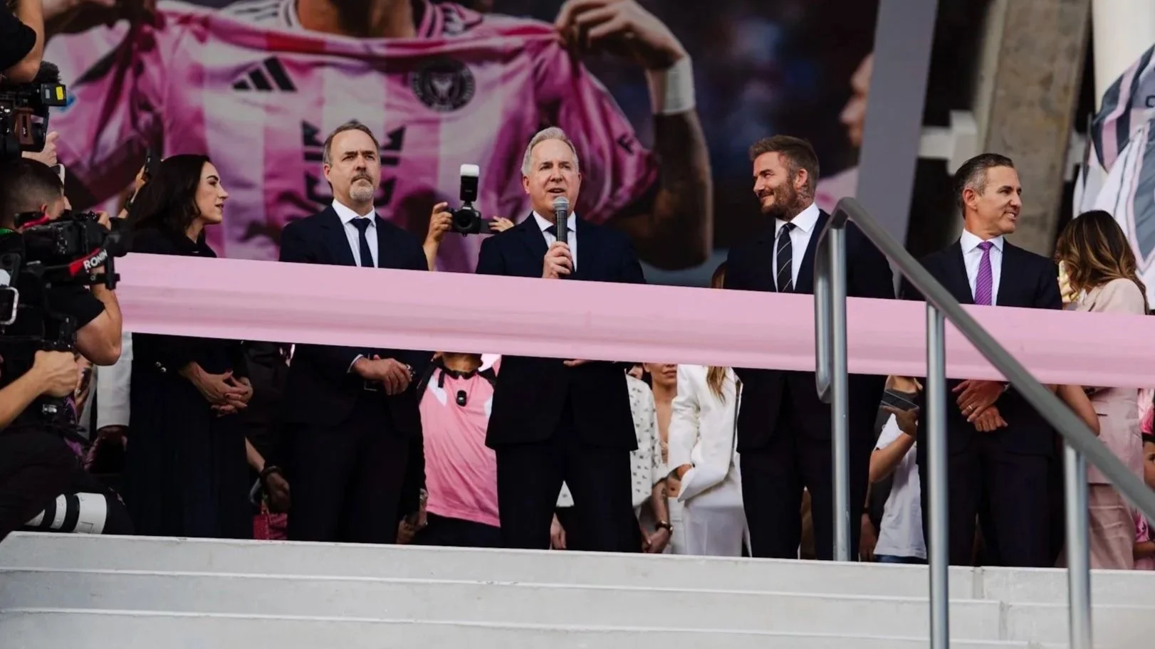 Jose Mas, Jorge Mas, y Sir David Beckham. Foto cortesía de Dante Valencia (Dyvmedia)